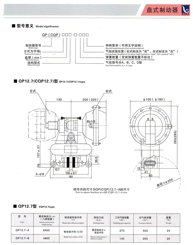 名稱:CQP系列鉗盤式制動器